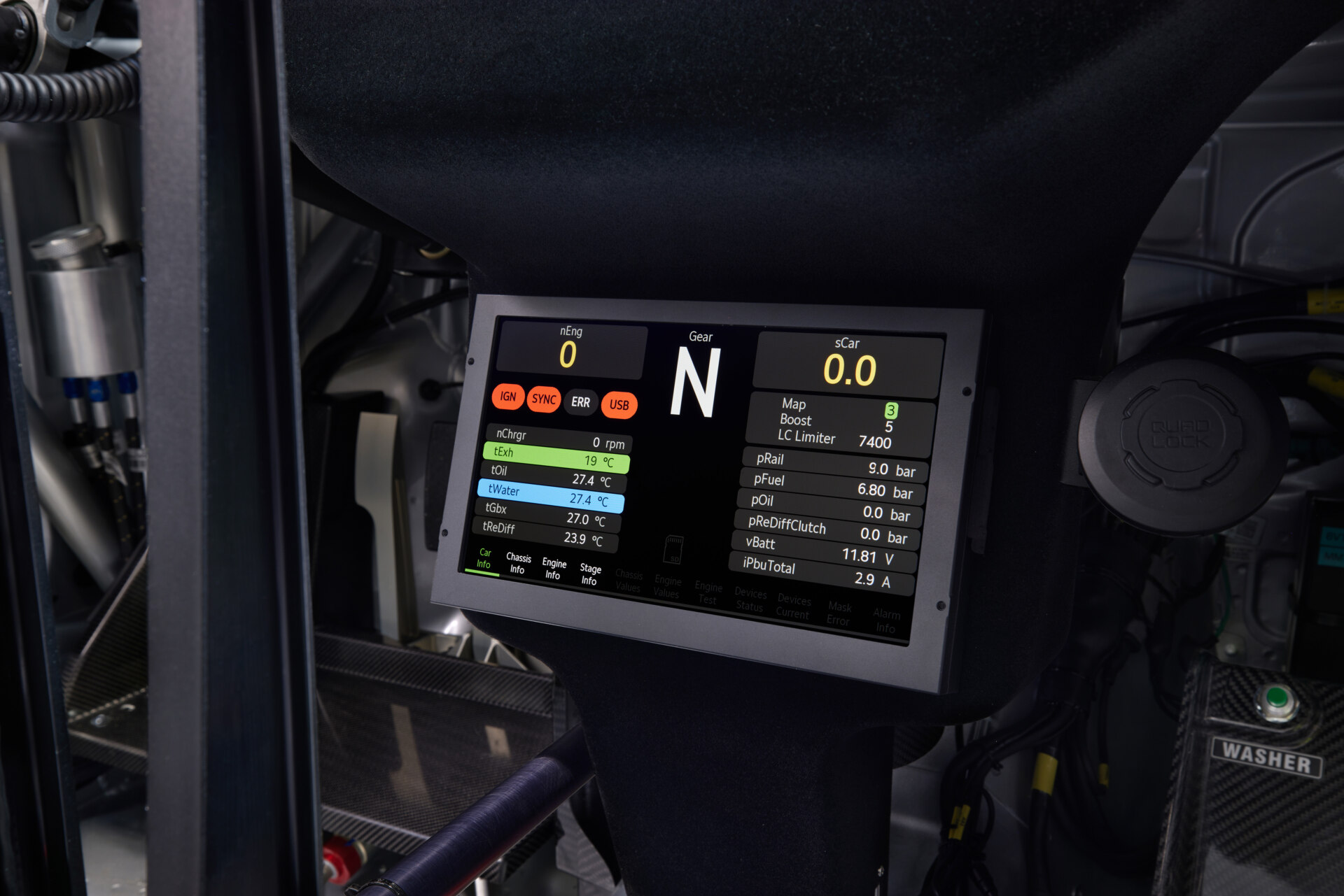 A sofőr számos funkciót közvetlenül elérhet a kormányon lévő gombok segítségével is, és a motorindító gombot is a kormányba integrálták. Ennek oka, hogy innen gyorsan elérhető, ha például egy kicsúszás után újra kell indítani a motort.