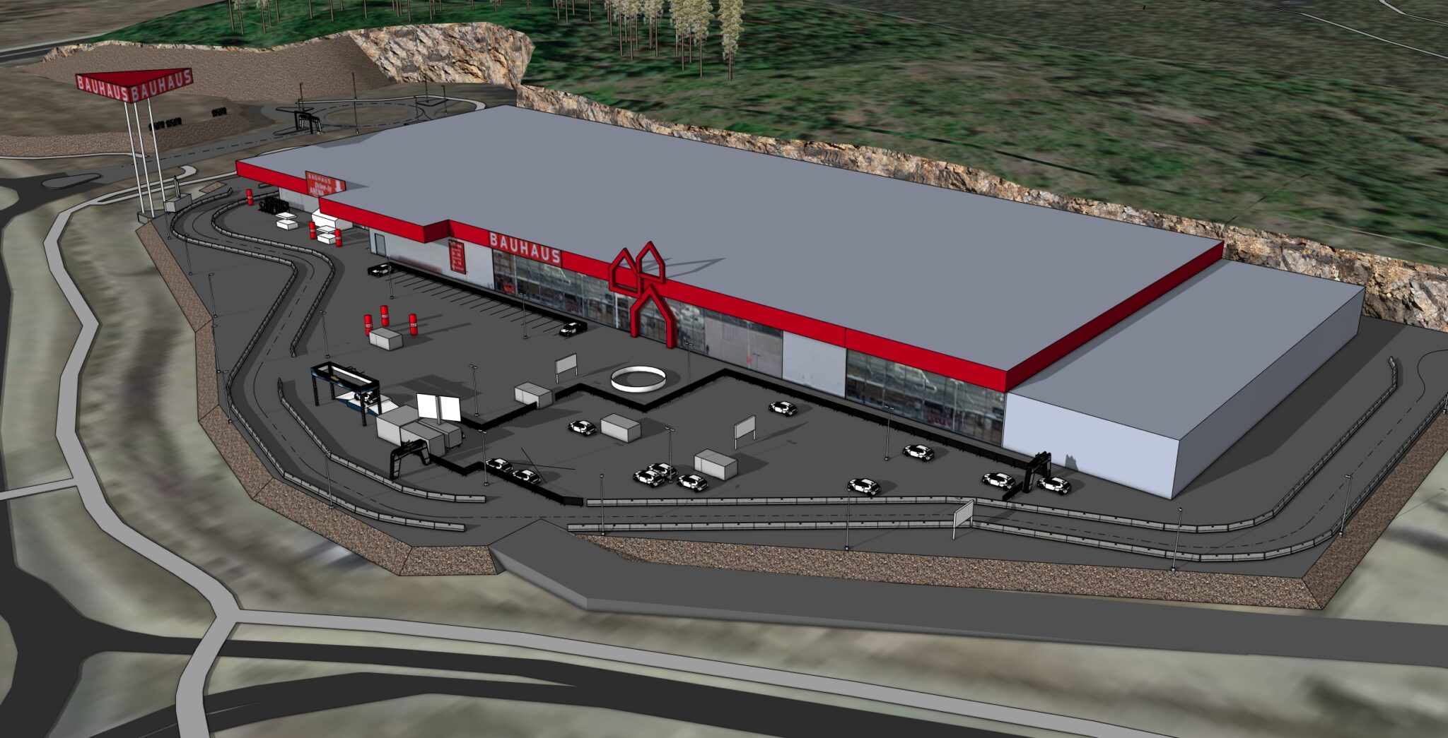 „A javaslat eredeti változatában közvetlenül a főbejárat előtt volt egy nézőtér. Ezt a a verziót azonban félre kellett tenni, mivel nehéz volt megoldást találni az aréna építésével járó összes logisztikai feladatra, az áruház látogatóival és áruszállításával együtt” – magyarázta Johan Saxne, a BAUHAUS marketingigazgatója, és azt is hozzátette, hogy végül sikerült megoldani, hogy közvetlenül a főbejárat előtt legyen a szuperspeciál.