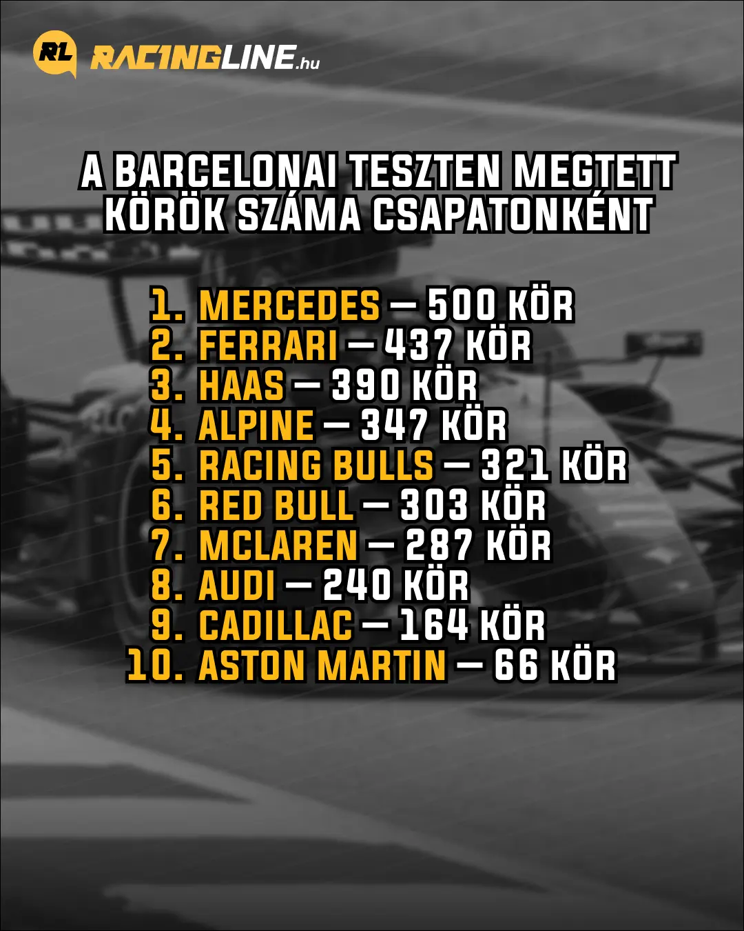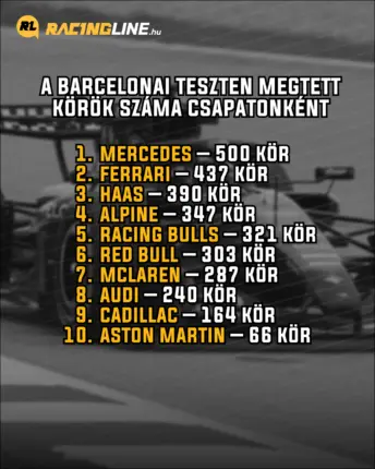 A tavalyi középmezőny tagjai, illetve az újonnan csatlakozó Cadillac teljesítményét elnézve az kijelenthető, hogy míg például a Haas és a Racing Bulls komolyabb gondok nélkül végigcsinálta a maga tesztjét, addig a története első F1-es motorjával érkező Audi, illetve a csapatát a nulláról felhúzó második amerikai istálló korántsem zárt problémamentes tesztet. Ez a megtett körök számából és a nyilatkozataikból is visszaköszönt, miközben semmi meglepő nincs benne, elvégre ez az F1, és az lenne a csoda, ha valaki megérkezve rögtön hozná azt, amit a többiek.