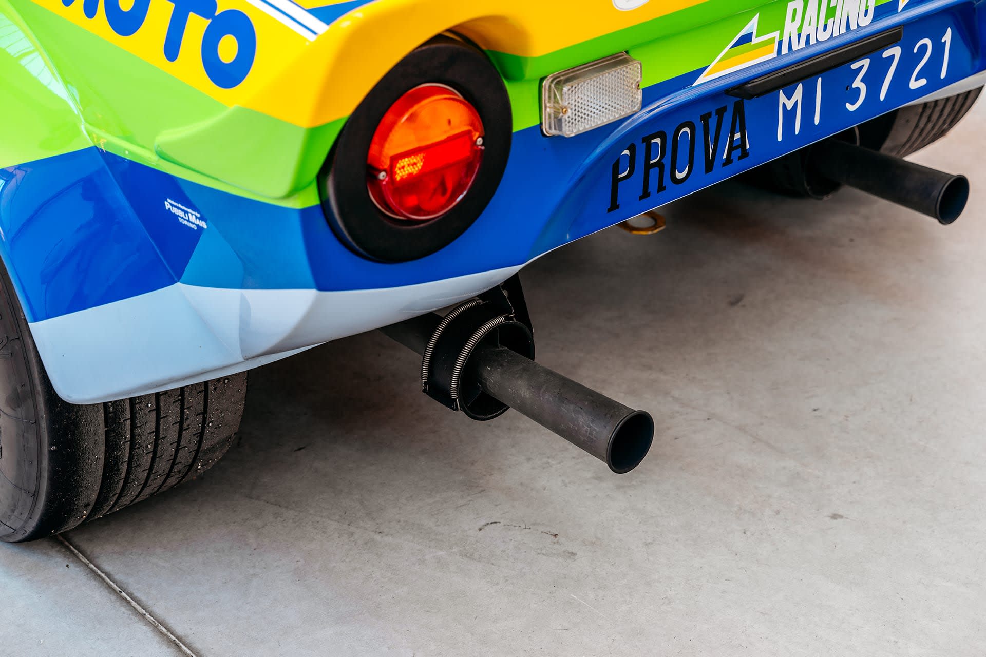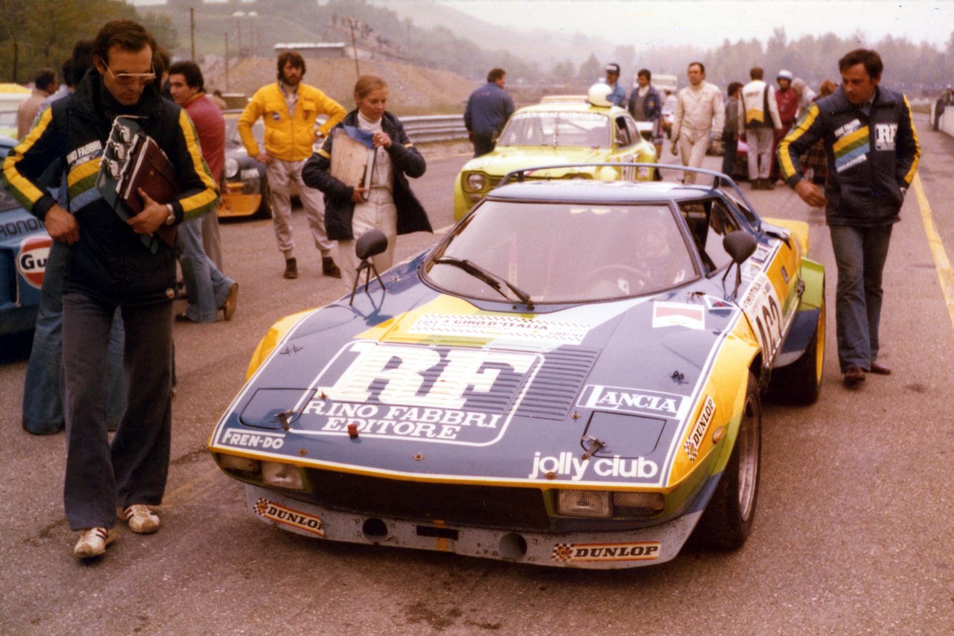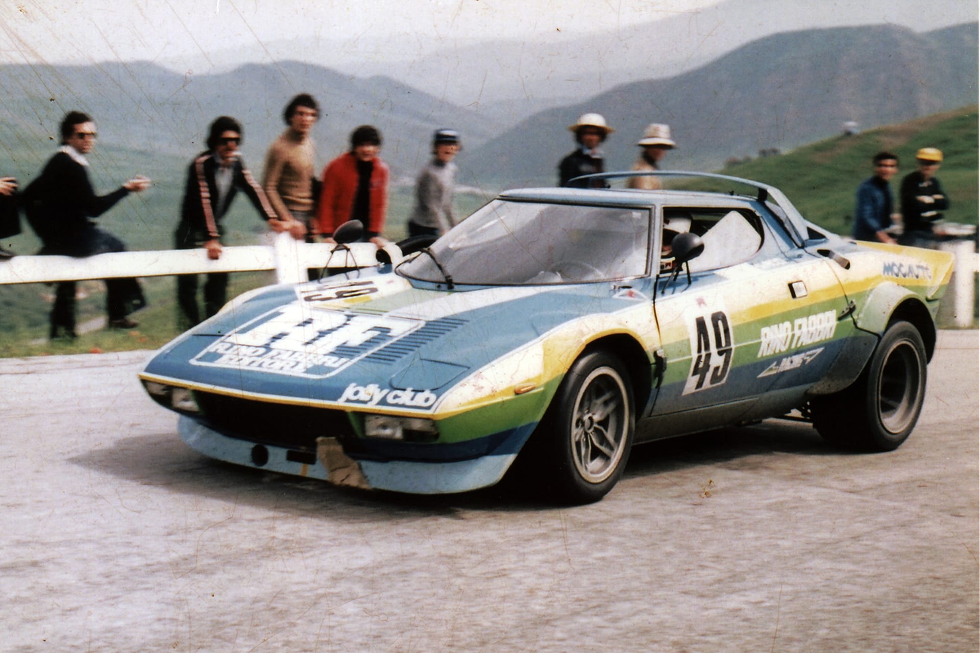 Ennek a Stratosnak az első bejegyzett tulajdonosa, a milánói Lancia képviselet, a Mocauto, megbízta a Jolly Club-ot, hogy induljanak az olasz GT-bajnokságban. Mivel az egyik jelentős támogatójuk a Rino Fabbri Editore kiadó volt, így született meg a Stratos sárga, zöld és kék Rino Fabbri Racing dekorációja. A „PROVA MI 1654” rendszámtábla is az autó gyári eredetére utal.
