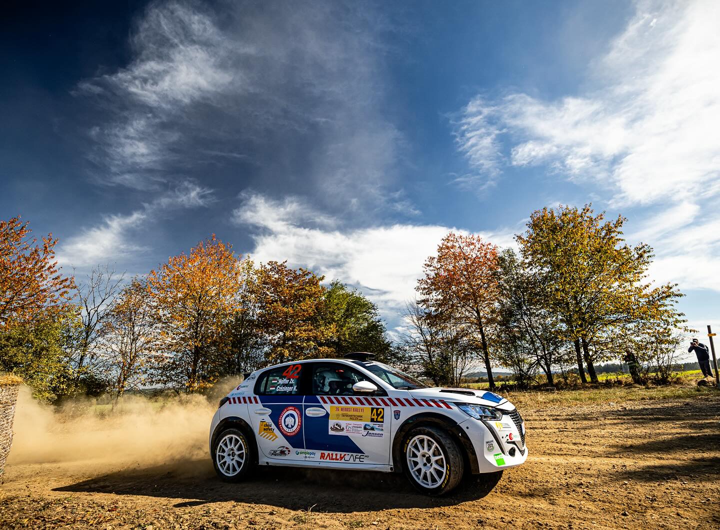 A Rally3-ra alapoztam, azt gondoltam, hasonlóan lehet menni a Rally4-es Peugeot-val is. Mint kiderült nem, de azért elég jó időket lehetett autózni ezzel a kocsival is. Az első gyorsasági az ismerkedésről szólt, illetve szólt volna, de az előttünk levő páros pár kilométer után elesett egy felhordáson, mi pedig meg is álltunk a balesetnél. A második gyorsaságin is óvatosak voltunk, ez betudható volt annak, hogy az ülésbeállítás mint kiderült nem jól sikerült, én is pontatlan voltam, volt egy-két túlcsúszásunk is volt, ezeket a hibákat próbáltam javítani.”