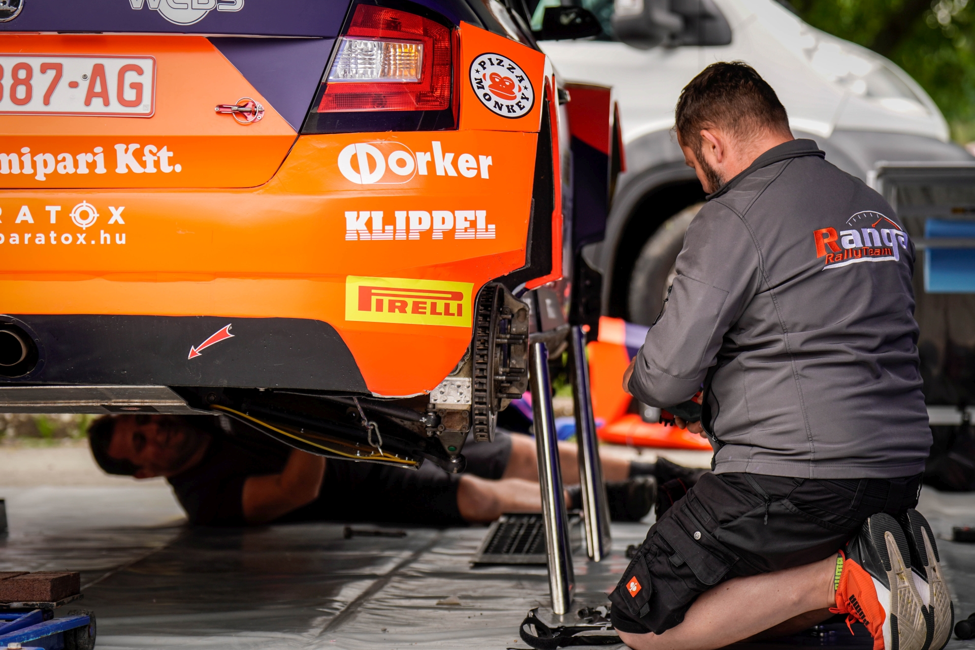 Csütörtökön kora délután békés volt a hangulat a Ranga csapat sátrában. A szemerkélő esőben Janek az itinert frissítgette, Büki Ernő épp elindult valamilyen ügyet intézni, Ranga Péter és Ranga László csendesen beszélgettek, a szerelők pedig az utolsó simításokat végezték a csapat Skoda Fabiáján.