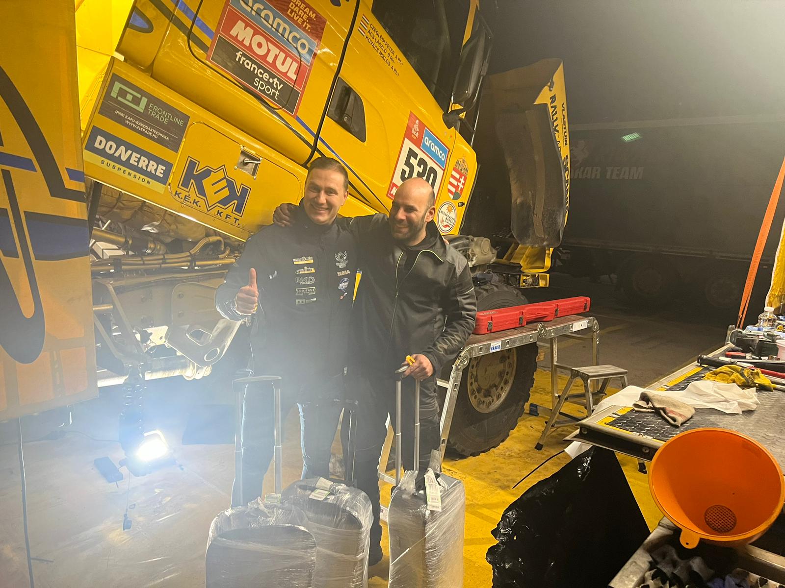A Qualisport Racing jó híreket kapott hajnalban. Megérkezett a rijádi táborba az az alkatrészcsomag amivel Ács László és a szervizcsapat megkezdheti a Scania javítását és reményeik szerint kedden újra elrajtolhatnak.