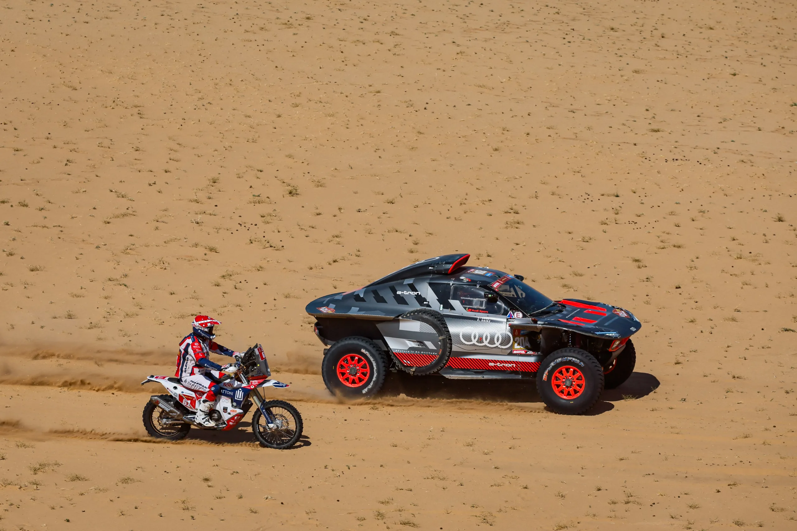 A motoros mezőnyben már a 438 kilométeres szakasz 11. kilométernél megállt Sam Sunderland. A GasGast órákon át próbálta megjavítani de nem járt sikerrel, így a tavalyi balesete után isdén sem ér célba a kétszeres Dakar-győztes.