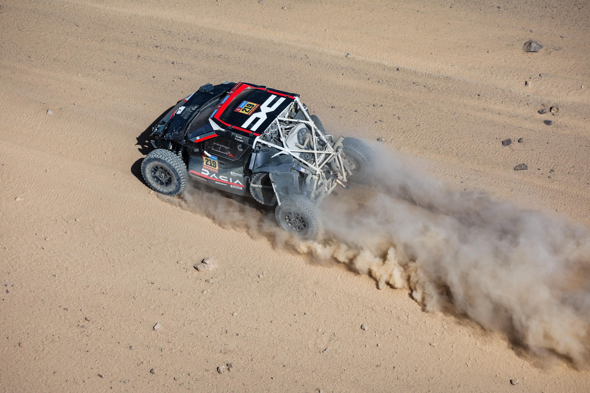 A 2025-ös Dakar Rally keddi szakaszán Sebastian Loeb borult a Dacia Sandriderrel.