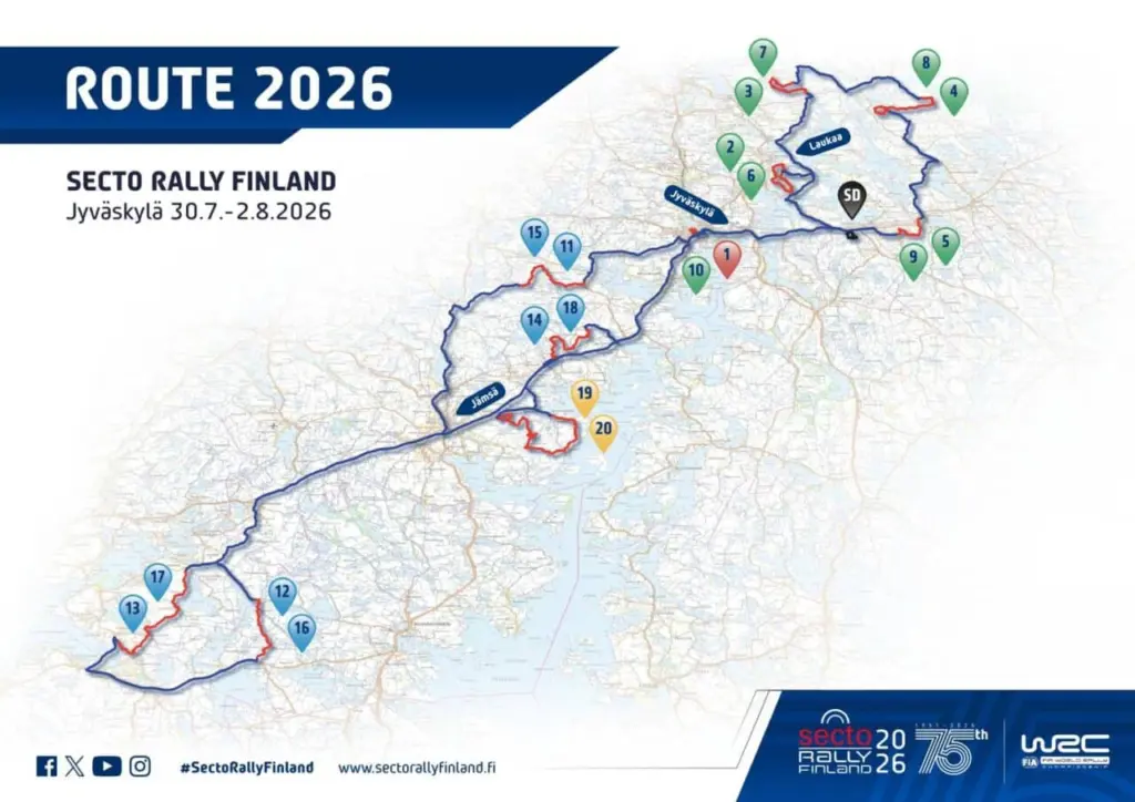 A július 30. és augusztus 2. között esedékes Finn Rally szervezői bemutatták a húsz gyorsasági szakaszból álló útvonalat, amely tartogat ismerős részeket, de a szakaszok többsée megváltozott a tavalyi évhez képest.